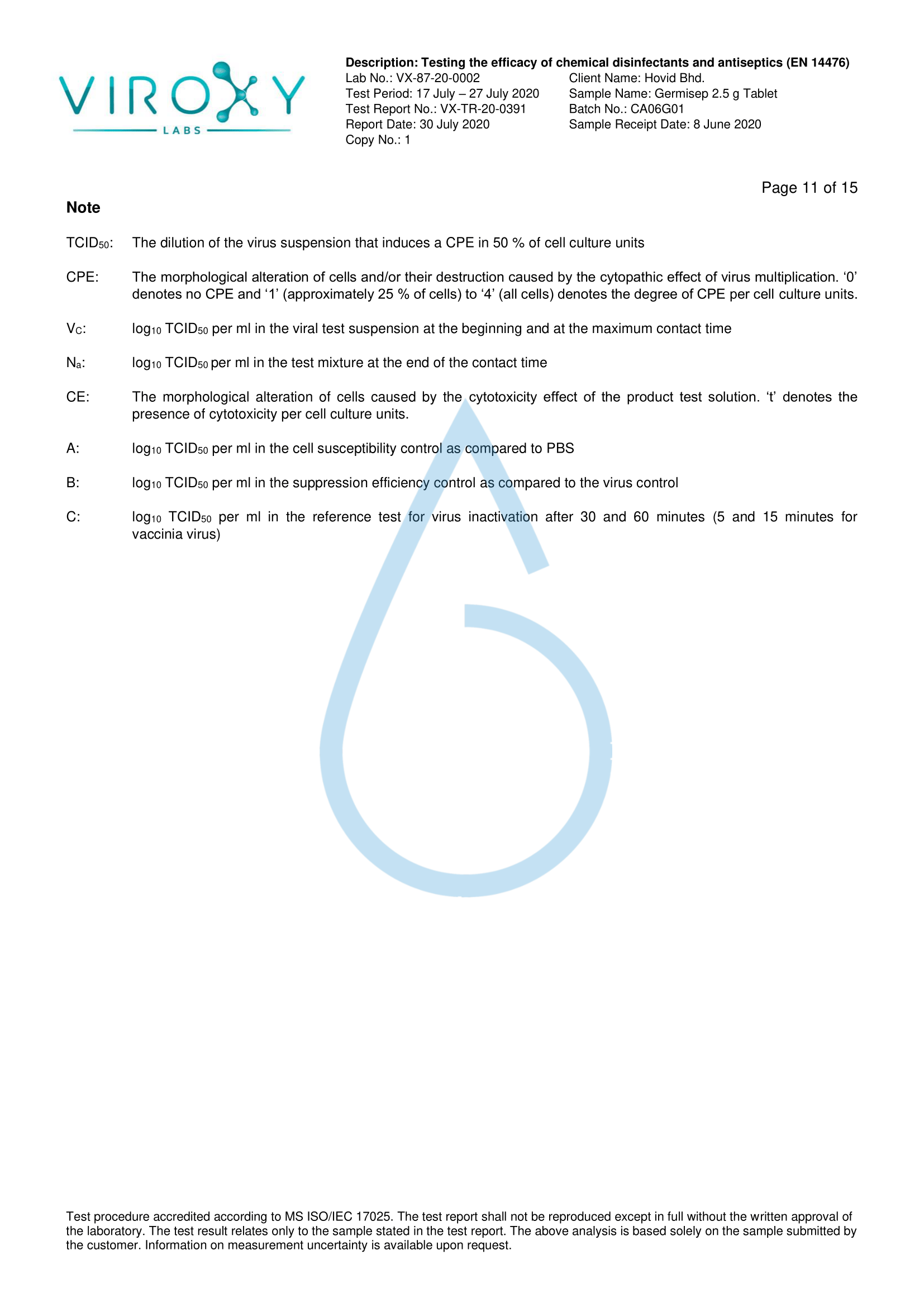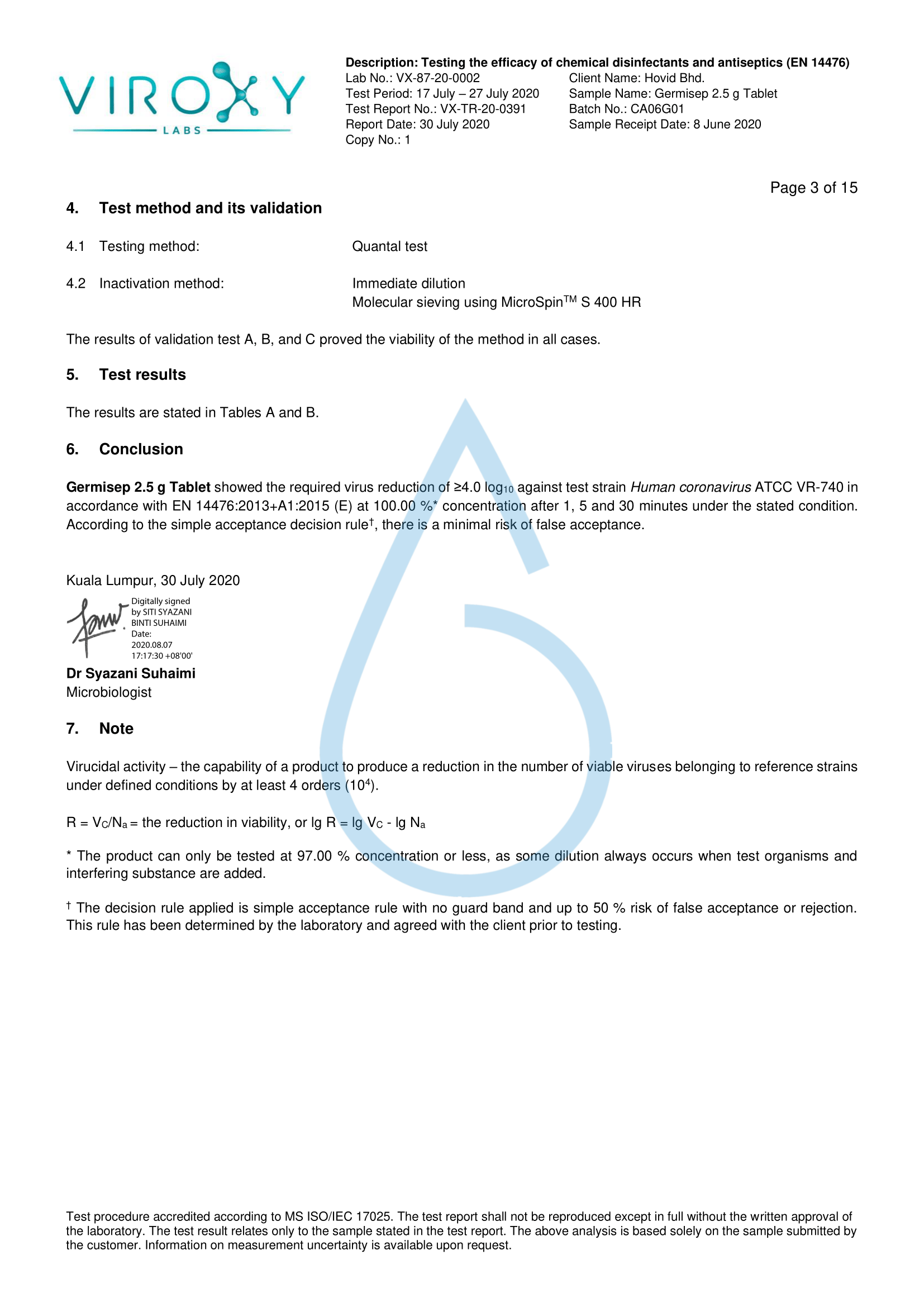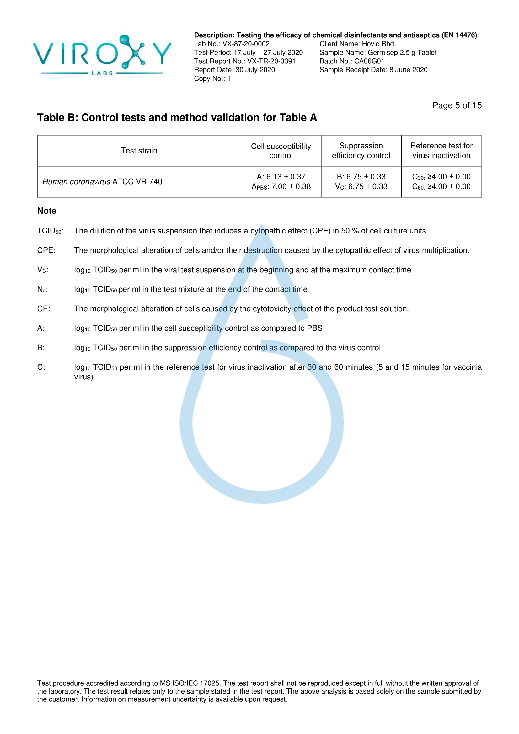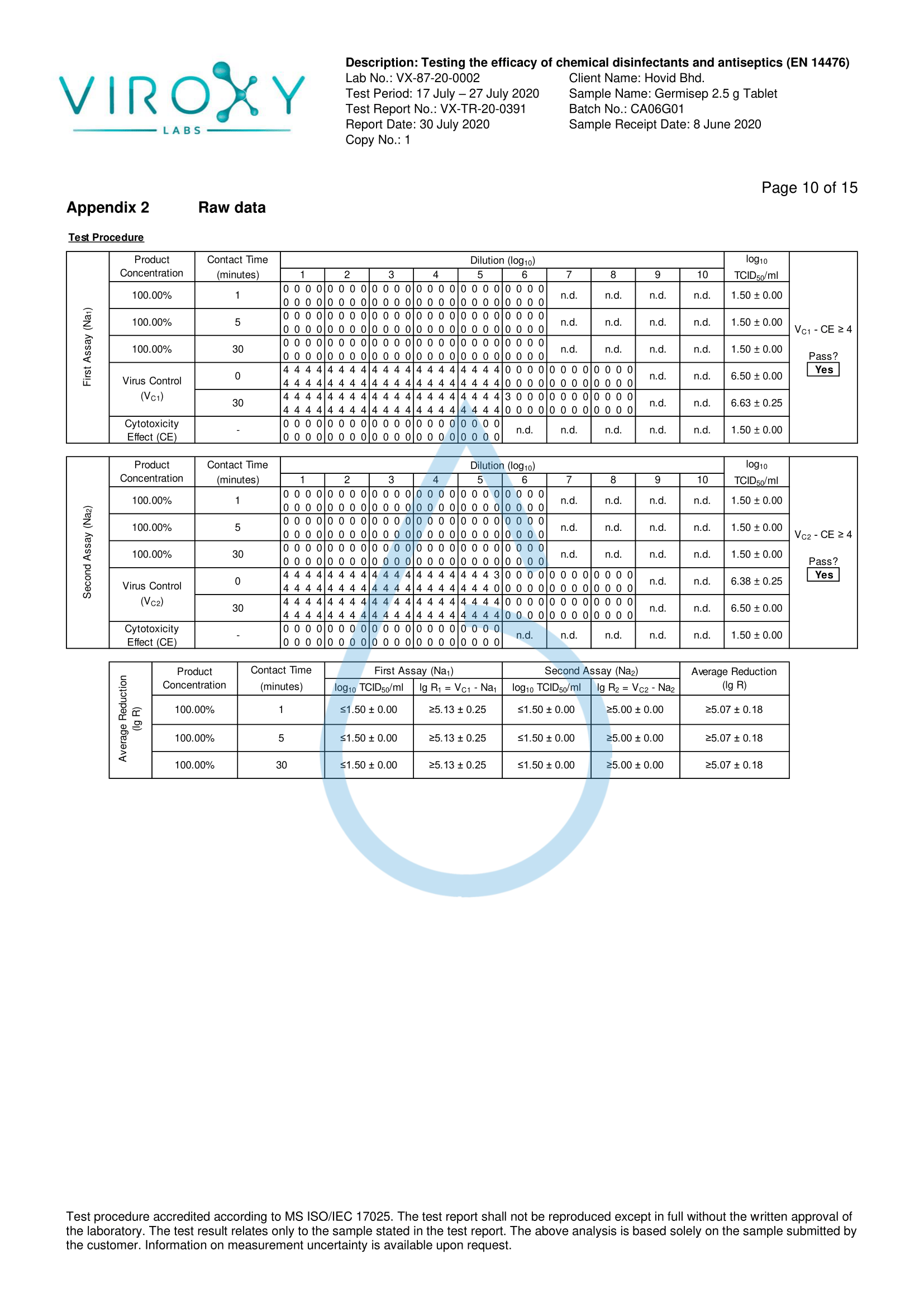 DETERMINATION OF THE VIRUCIDAL ACTIVITY (EN 14476) OF GERMISEP 2.5 G TABLET