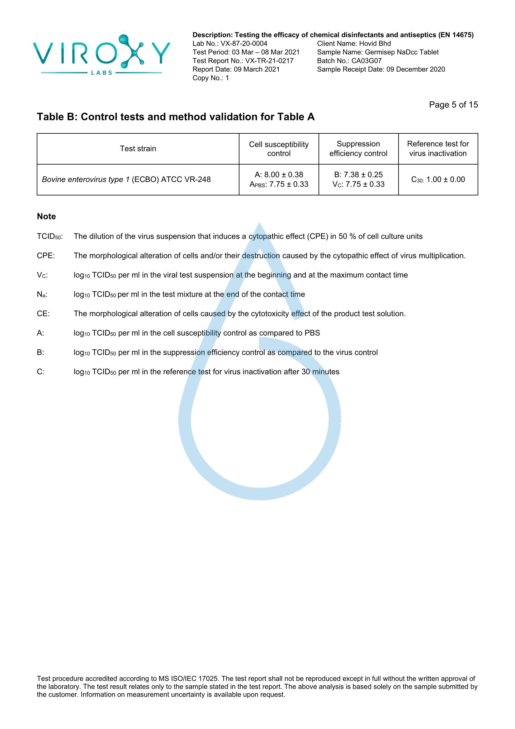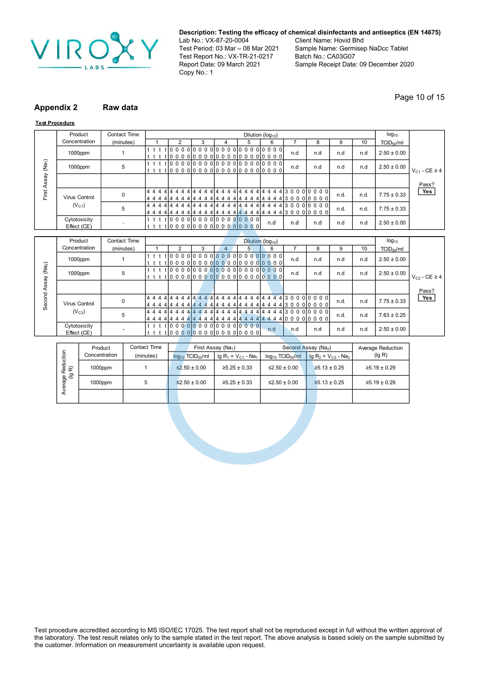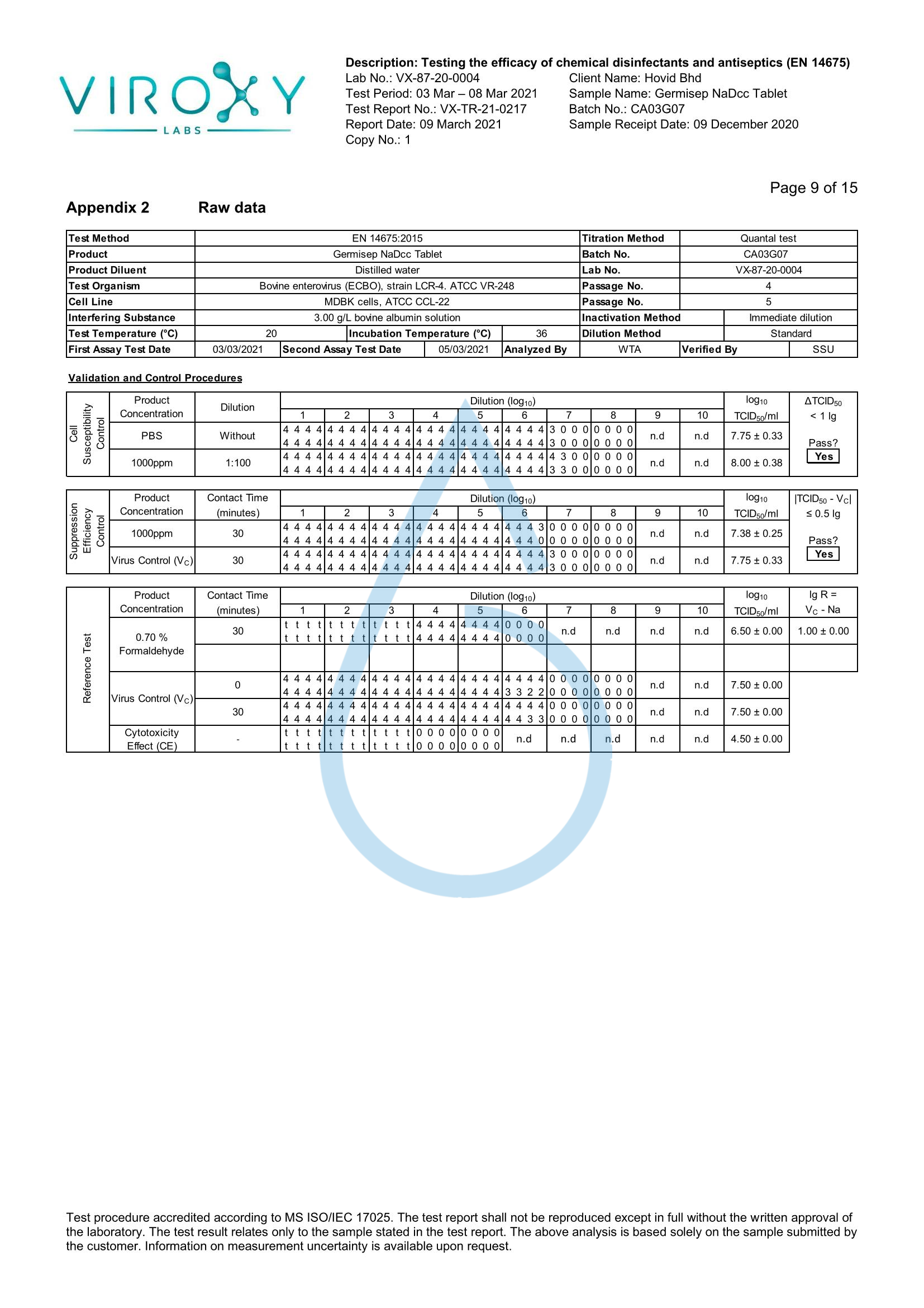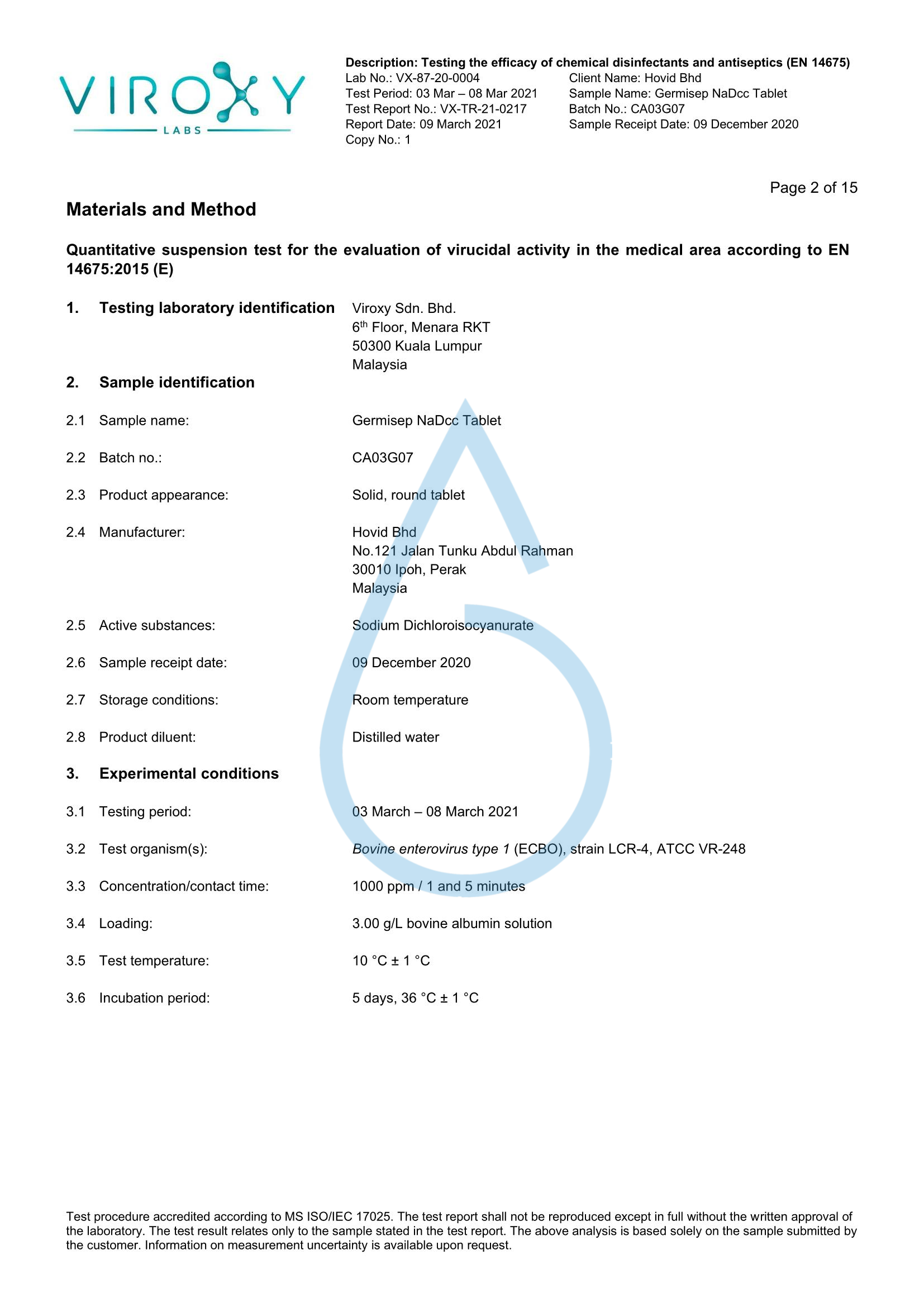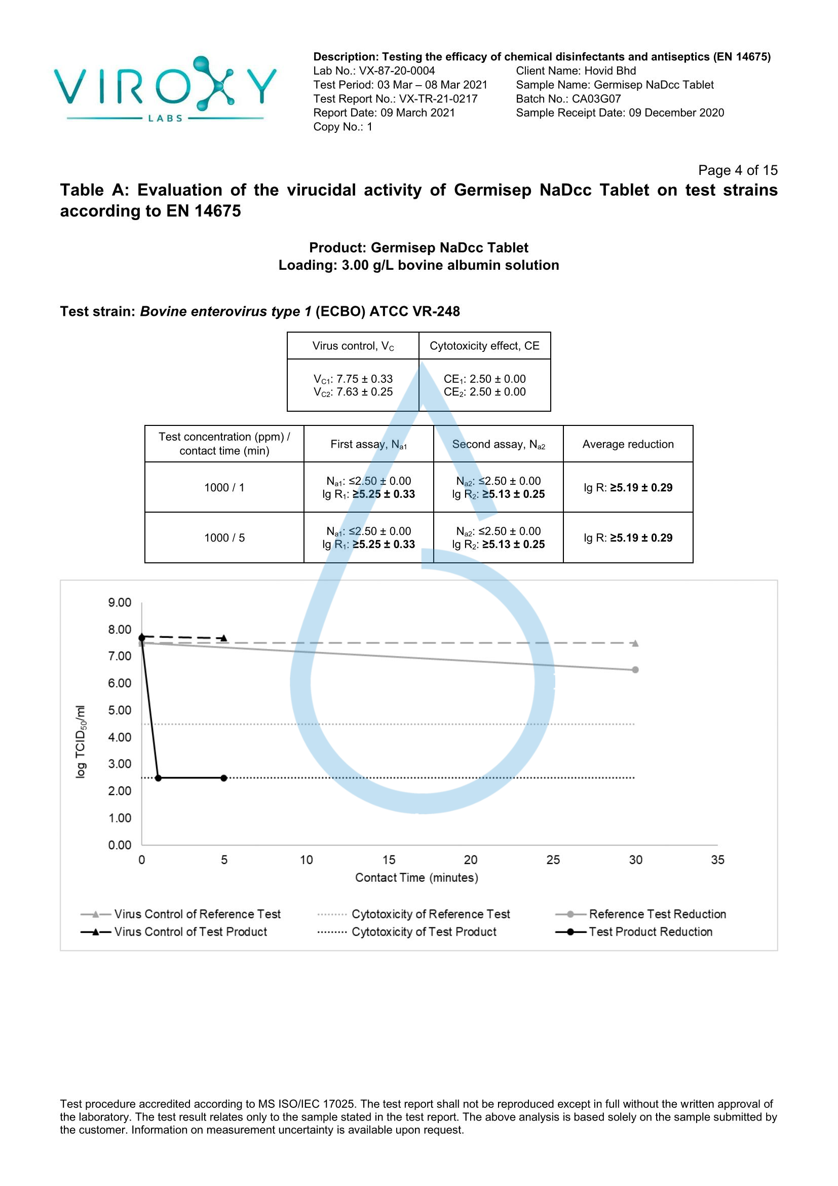 DETERMINATION OF THE VIRUCIDAL ACTIVITY (EN 14675) OF GERMISEP NADCC TABLET