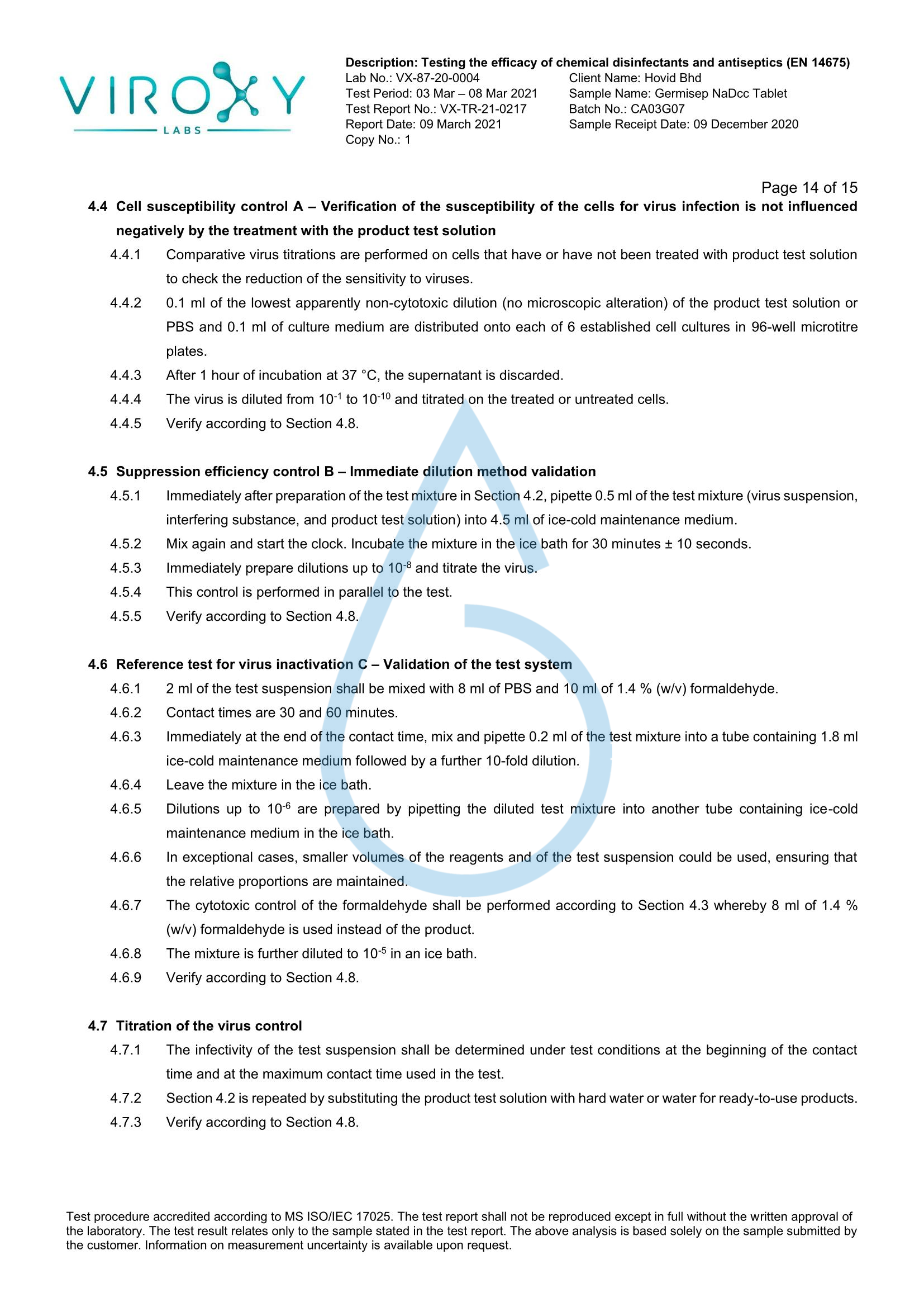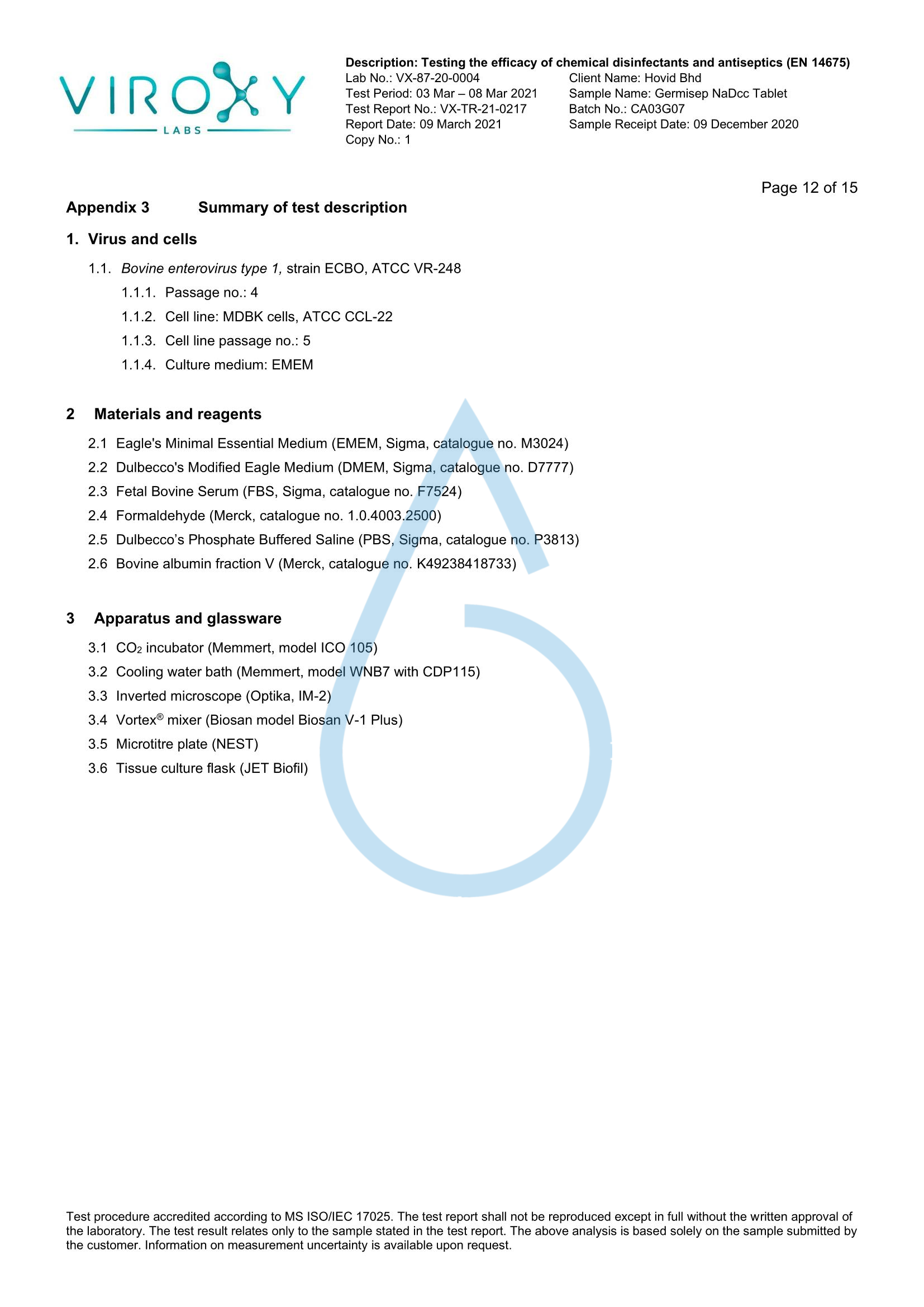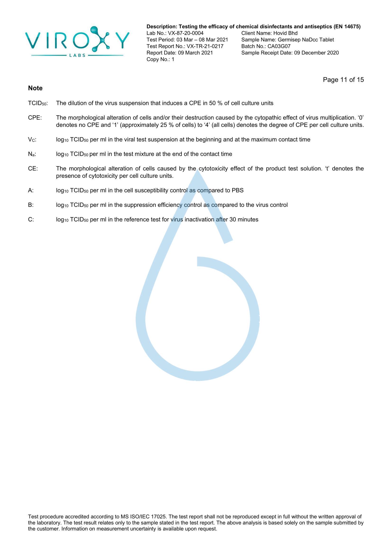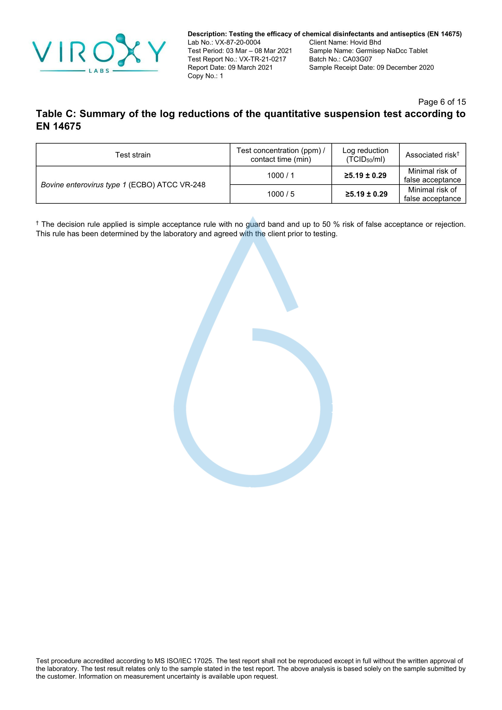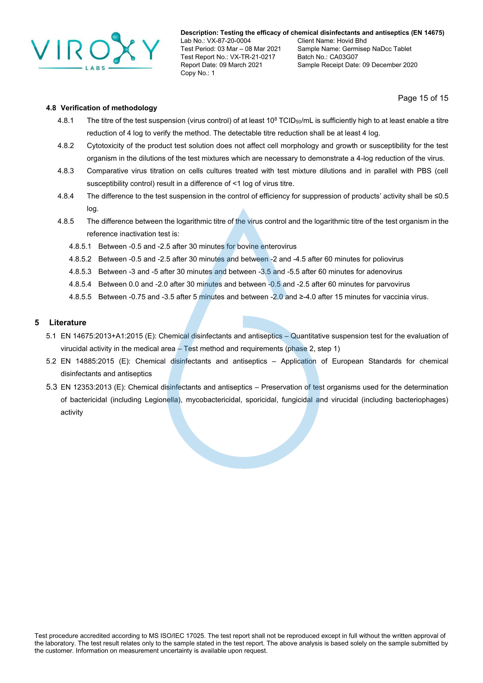 DETERMINATION OF THE VIRUCIDAL ACTIVITY (EN 14675) OF GERMISEP NADCC TABLET